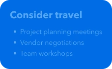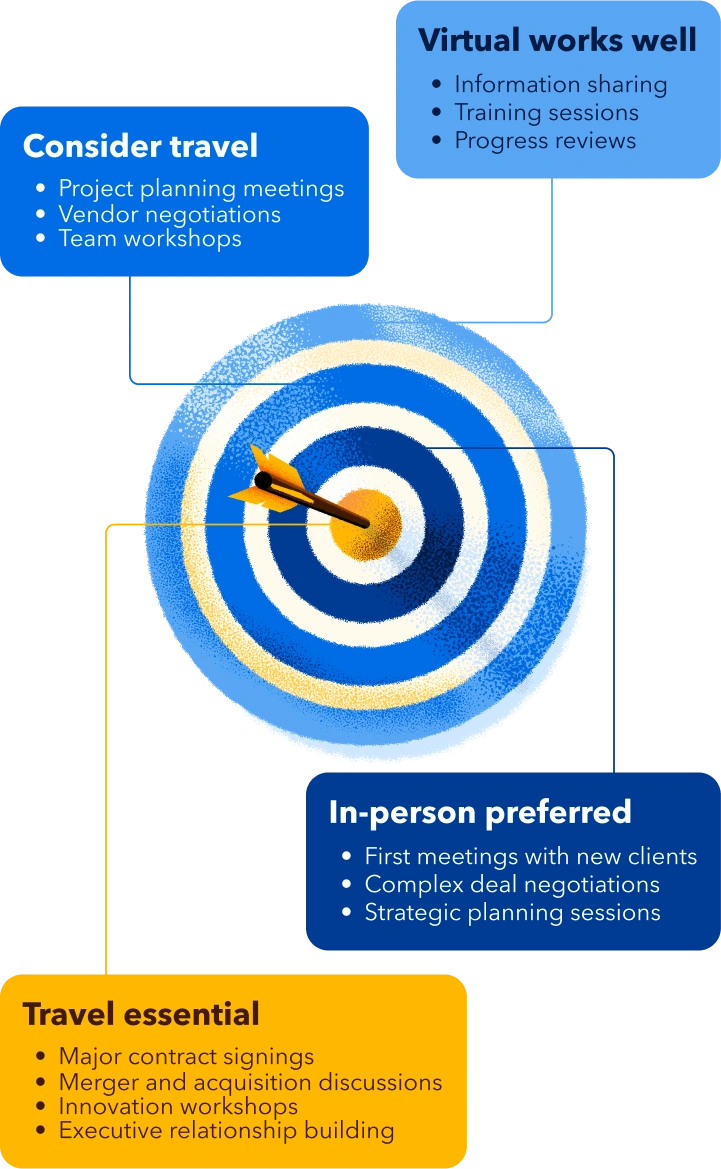 - Share the intentional travel approach with your team to let them decide which travel adds value and give them authority to decline unnecessary trips.