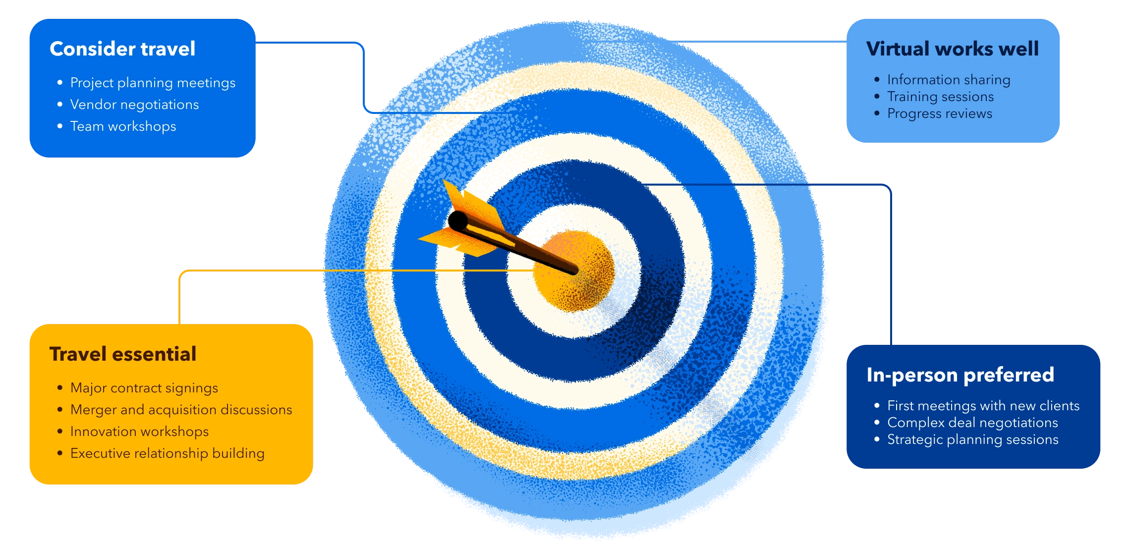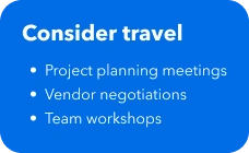 - Share the intentional travel approach with your team to let them decide which travel adds value and give them authority to decline unnecessary trips.